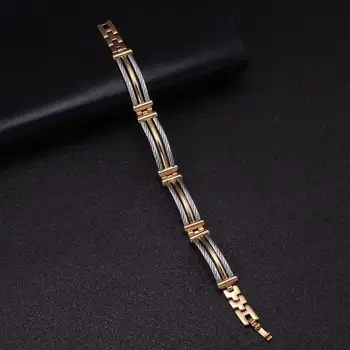 The bracelet’s structure features a blend of metallic tones with gold accents that highlight the intricate layering and lend a touch of luxury to the piece. This bracelet is a symbol of sophistication, perfect for those who appreciate jewelry that combines classic elegance with a modern twist. The ‘Benjamin’ secures with a streamlined clasp, ensuring a comfortable fit for daily wear while making a bold statement.