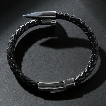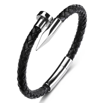 Accessorize with an attitude using the Bold Twist bracelet – a braided black leather masterpiece capped with a striking metal flat nail and spike design. The magnetic clasp, finished in sleek gunmetal stainless steel, not only offers ease but also a secure fit for all-day comfort and style. This bracelet addresses the modern desire for accessories that are both expressive and practical.