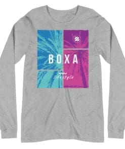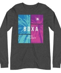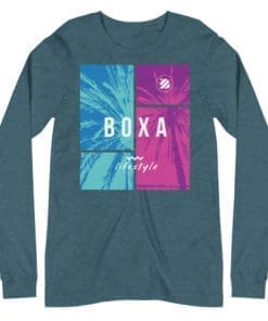 Immerse yourself in the liberating spirit of the outdoors with the Pink & Blue Palms long sleeve T-shirt by BOXA.
